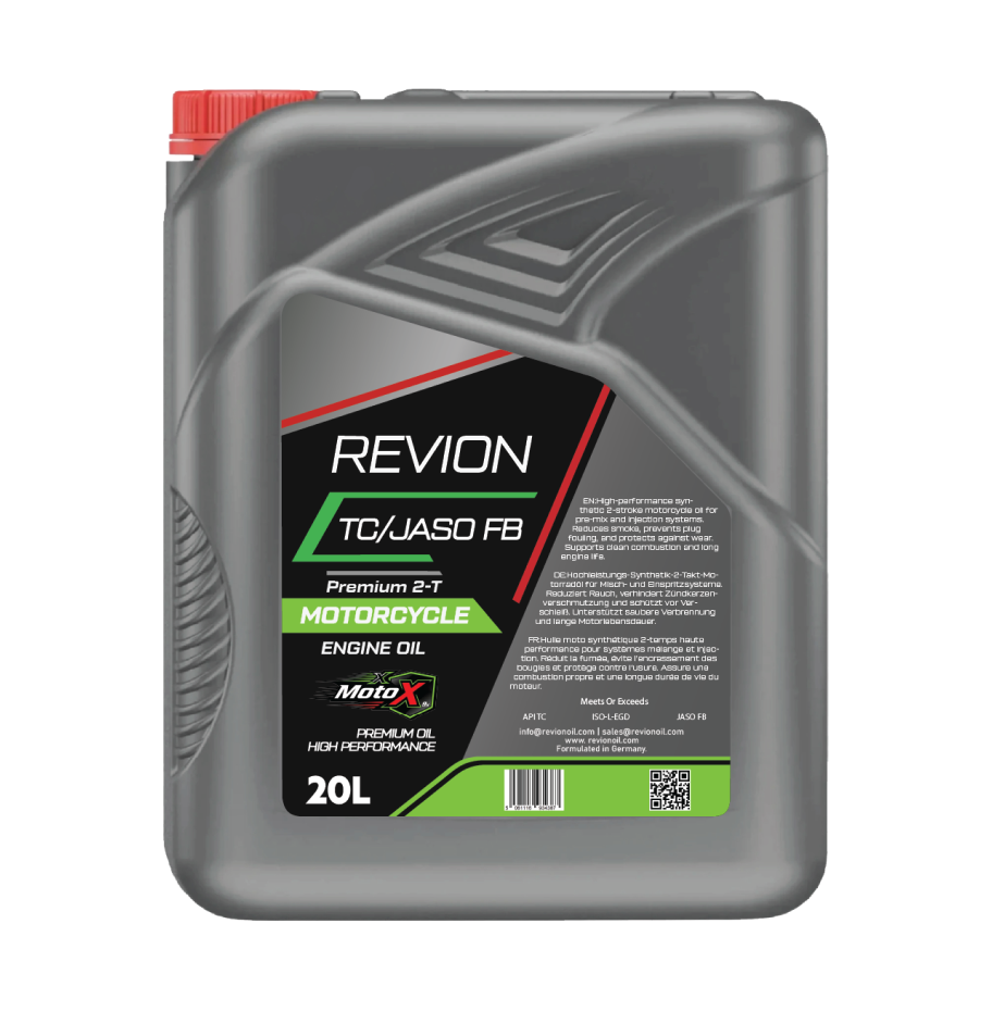 Revion 2T Motorcycle Oil was developed specifically for 2-stroke water-cooled engines using the best additives and high-quality base oils. We created this two-stroke oil with ash-free additives to completely clean the spark plug of all contaminants, fouling, and pre-ignitions. The 2-stroke oil mixes effortlessly with gasoline at a range of temperatures and ratios. great protection, cleanliness, and reduced smoke emissions. whatever the state of the roads and traffic. Motorcycle oil Revion 2T is appropriate for all oil-injection and premix systems. The Dynamic Performance Additive (DPA) technology helps keep the engine of your motorcycle protected and clean for a longer period. Additionally, it prevents your bike’s exhaust system from becoming clogged, encourages clean combustion while lowering exhaust smoke, and increases engine life without sacrificing power. Additionally, Revion 2T Motorcycle Oil contributes to outstanding protection against metal-to-metal wear because of its thick lubricant film strength. Revion 2T Motorcycle Oil is a special synthetic lubricant that meets or surpasses both international standards and motorcycle manufacturer specifications.